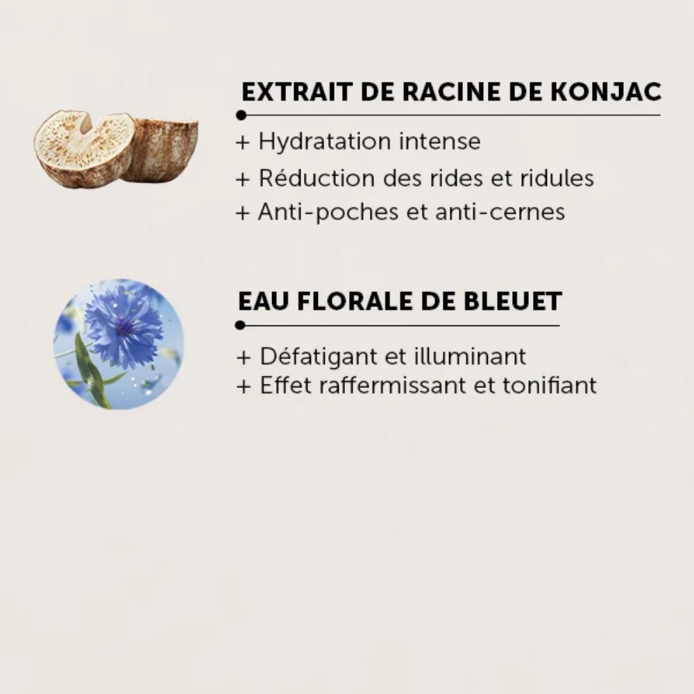 Décongestion immédiate : réduit l’apparence des poches et des cernes.