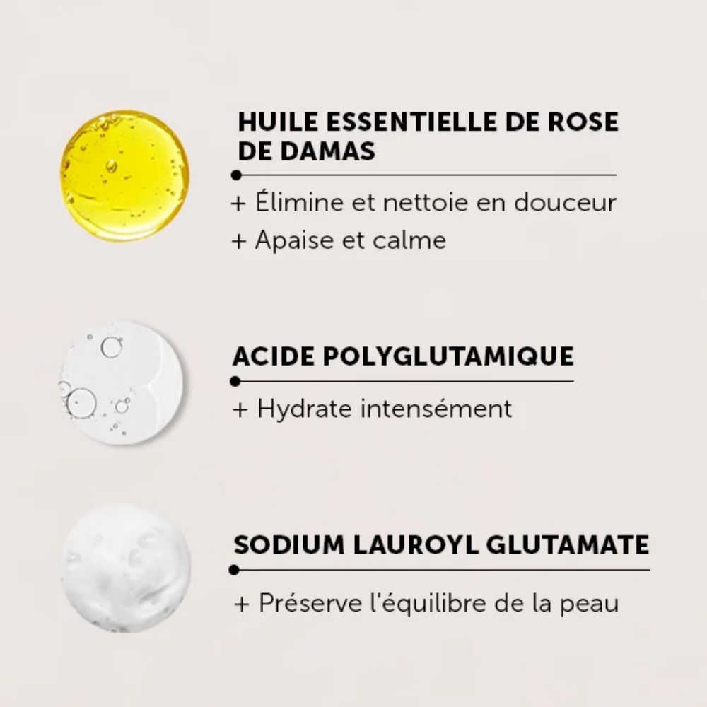 Nettoyage doux : purifie sans agresser ni dessécher.