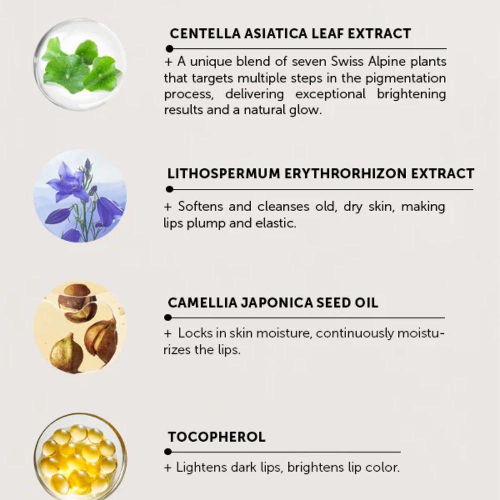 Éclaircit les lèvres foncées, illumine la couleur des lèvres.
